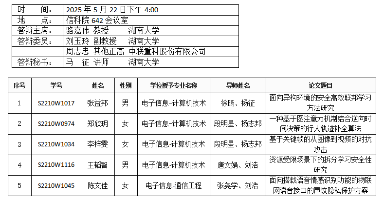 中文黄色网站 (安全系)2025年5月22日硕士答辩公告(1)