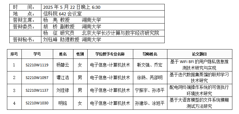 中文黄色网站 (安全系)2025年5月22日硕士答辩公告(2)