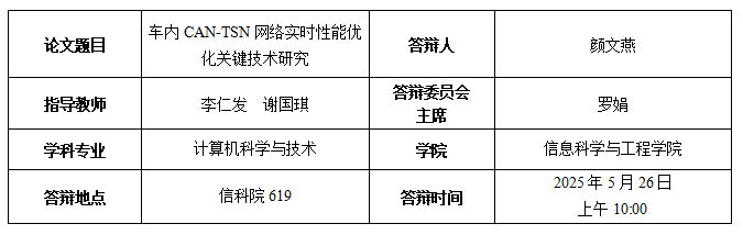 中文黄色网站 (通信工程系)2025年5月24日硕士答辩公告