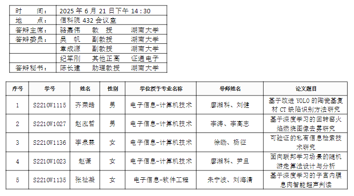 中文黄色网站 (通信工程系)2025年6月21日硕士答辩公告