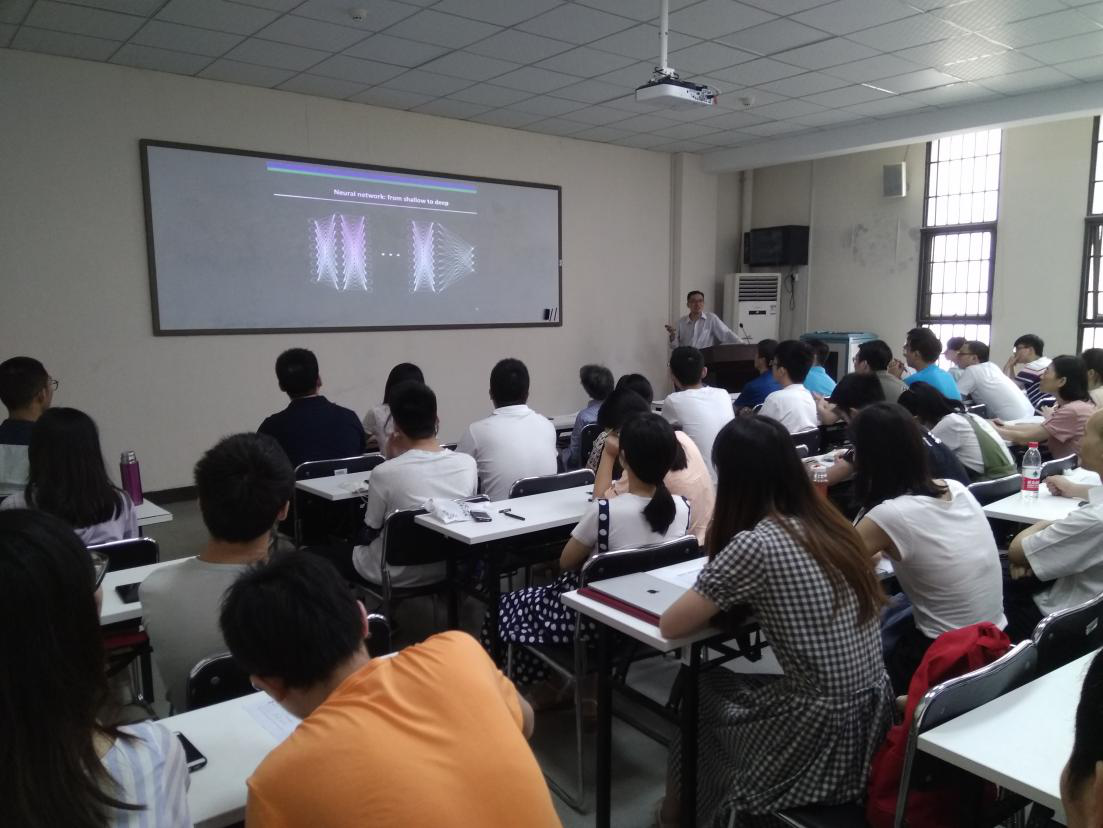 邀请,美国罗德岛大学何海波教授做了题为“Machine Learning: From Shallow To Deep”的精彩学术报告。该报告介绍了何海波教授课题组在深度学习领域多年的研究工作,吸引了学院众多相关领域的老师和研究生参会。