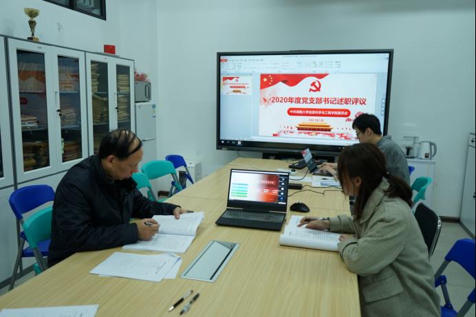 党委于2021年1月19日下午在院楼208召开了2020年度党支部书记述职评议大会。本次会议采取线上述职和线下评议相结合的方式,线下会议由学院先锋信息党建工作组总干事长赵一博同志主持,参加会议的有院党委书记杨忠旺老师、院党委副书记向江老师,副处级组织员张国田老师,学工办主任、组织干事宋任刚老师,学生党建兼干张雅静老师。
